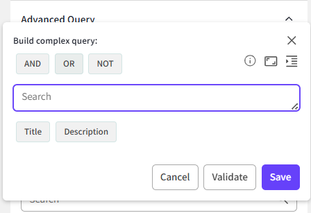 The Advanced Query Filter empowers you to craft highly specific search queries and allows you to target your search by entering criteria directly for each supported indexed field. Use the advanced Query to refine your search results and pinpoint the exact information you require.