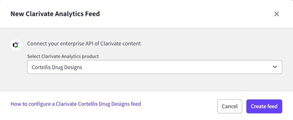 How to Configure a Clarivate Analytics Cortellis Drug Design Feed