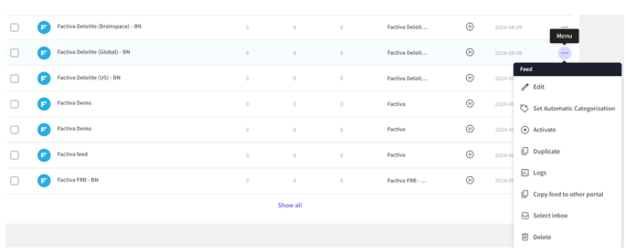 The Factiva select feeds can be created once the Factiva Select connector is enabled in the portal