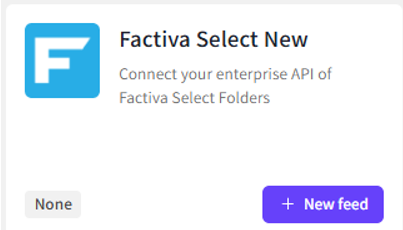 - Click the New Feed button and select the Factiva feed in the drop-down menu.