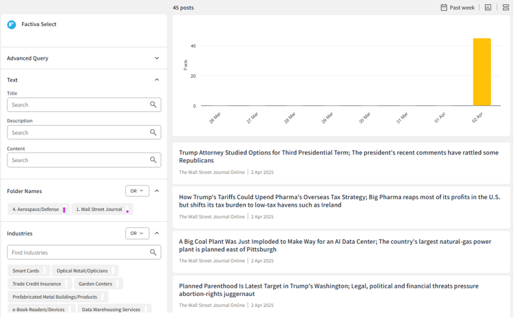 Factiva Select is a customizable news feed solution from Dow Jones, designed to deliver filtered XML content from an extensive range of global news and business sources.