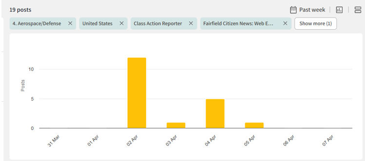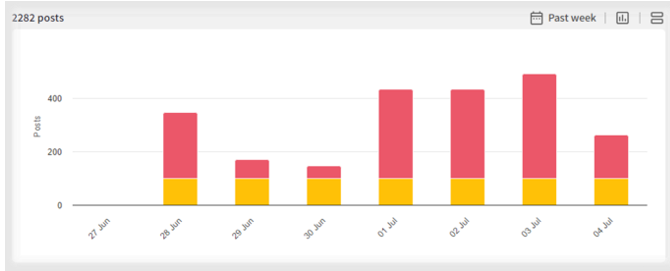The chart above the post list displays the number of retrieved posts within the specified Time period, providing an estimate of the amount of information your feed will generate over time. You can change the time period by clicking the Calendar button above the chart.