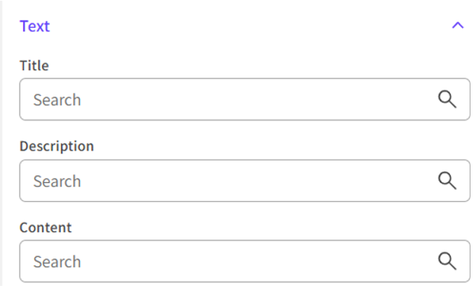 To search for specific keywords or phrases, use the search bars under the Text section, which includes Title, and Description.