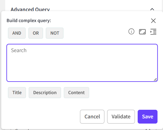 The Advanced Query Filter empowers you to craft highly specific search queries and allows you to target your search by entering criteria directly for each supported indexed field. Use the advanced Query to refine your search results and pinpoint the exact information you require.