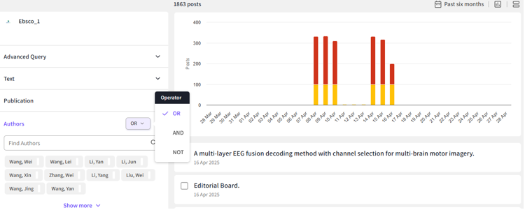 To narrow down the search, use the facets under the EBSCO filters along with the AND, OR, and NOT operators to further refine your search. Note that the filters and facets are only enabled when content matches the filters.