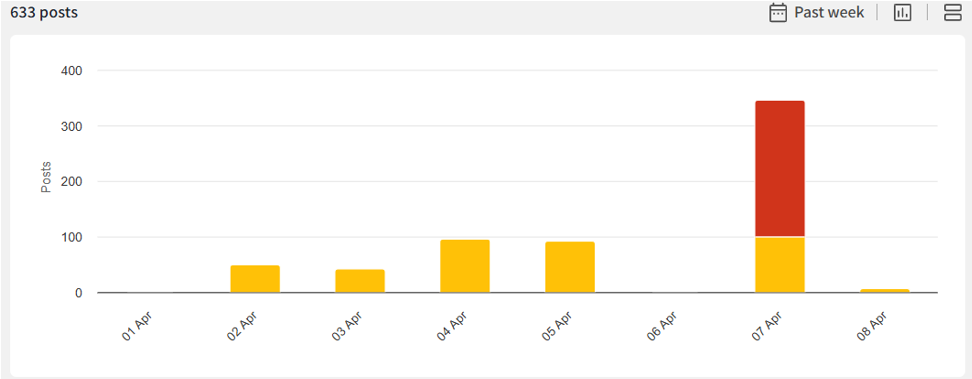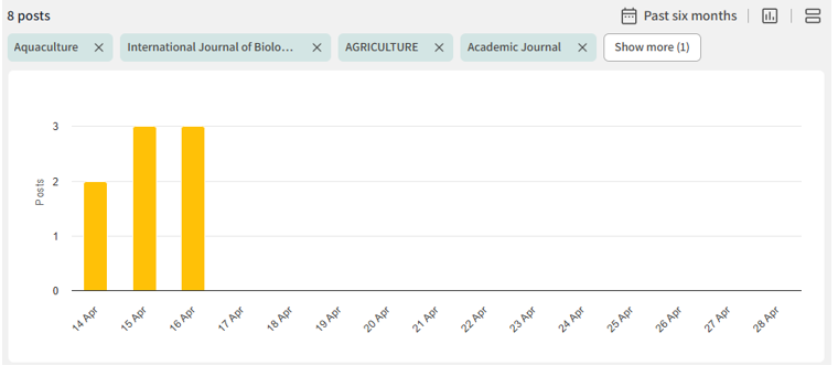 The chart above the post list displays the number of retrieved posts within the specified Time period, providing an estimate of the amount of information your feed will generate over time. You can change the time period by clicking the Calendar button above the chart.
