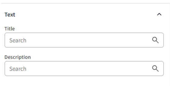 To search for specific keywords or phrases, use the search bars under the Text section, which includes Title, and Description.