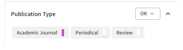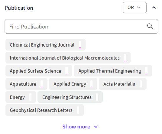 Publication Type: Search for publication type or use the predefined publication type facets to filter by. Click "Show more" to view all options.