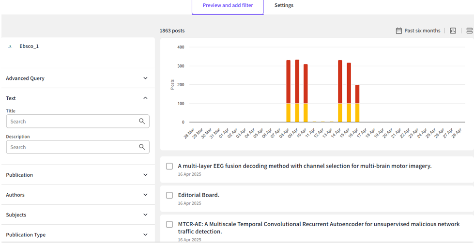 This section contains information about the Filter options for the EBSCO Select feeds.