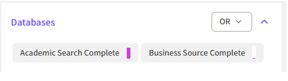 Databases: Search by databases names or use the predefined facets to filter by. Click on “Show more” to view all the options.