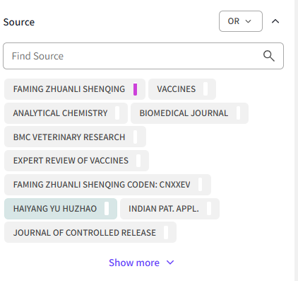 Source: Search by the Source or use the predefined facets to filter by source. Click on “Show more” to view all the options.