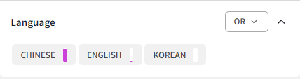 Language: Search by the language or use the predefined facets to filter by language. Click on “Show more” to view all the options.