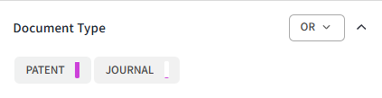 - Use the OR operator to include one or the other facet within a filter category. This gives a broad search.