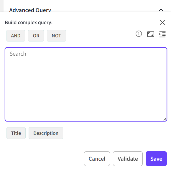 The Advanced Query Filter empowers you to craft highly specific search queries and allows you to target your search by entering criteria directly for each supported indexed field. Use the advanced Query to refine your search results and pinpoint the exact information you require.