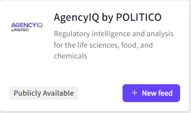 - Click the New Feed button and select the AgencyIQ by POLITICO feed in the drop-down menu.