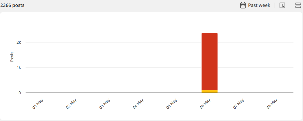 The chart above the post list displays the number of retrieved posts within the specified Time period, providing an estimate of the amount of information your feed will generate over time. You can change the time period by clicking the Calendar button above the chart.