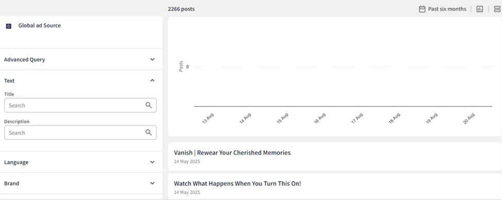 If the post list view is empty, no content matches your search within the set time period or filters. Change the Time period or adjust the filters and preview the result. The default period is “Past week”.