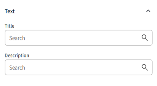 - To search for specific keywords or phrases, use the search bars under the Text section, which includes Title, and Description.