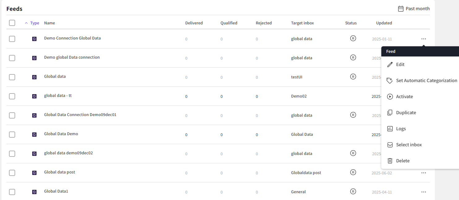 - Click the New Feed button and select the Global Data feed in the drop-down menu.
