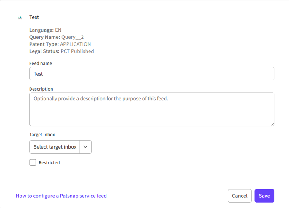To connect a Patsnap feed to your Inbox, follow these steps: