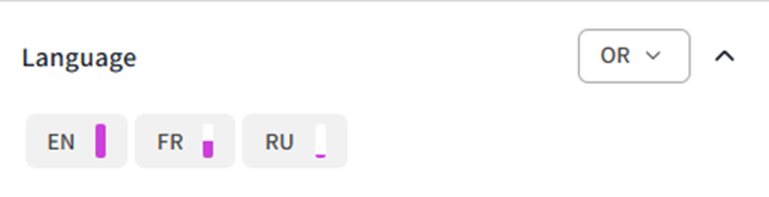 - Use the OR operator to include one or the other facet within a filter category. This gives a broad search.