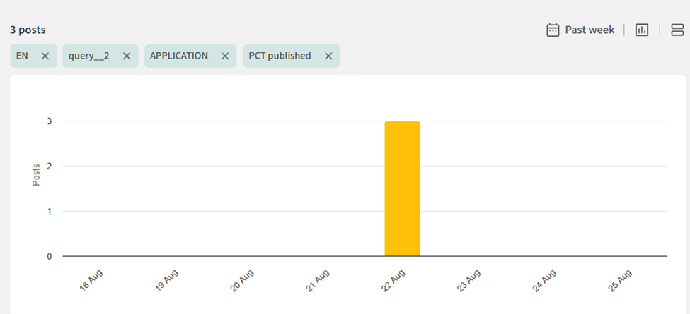 The chart above the post list displays the number of retrieved posts within the specified Time period, providing an estimate of the amount of information your feed will generate over time. You can change the time period by clicking the Calendar button above the chart.