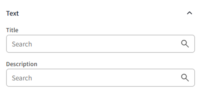 - To search for specific keywords or phrases, use the search bars under the Text section, which includes Title, and Description.
